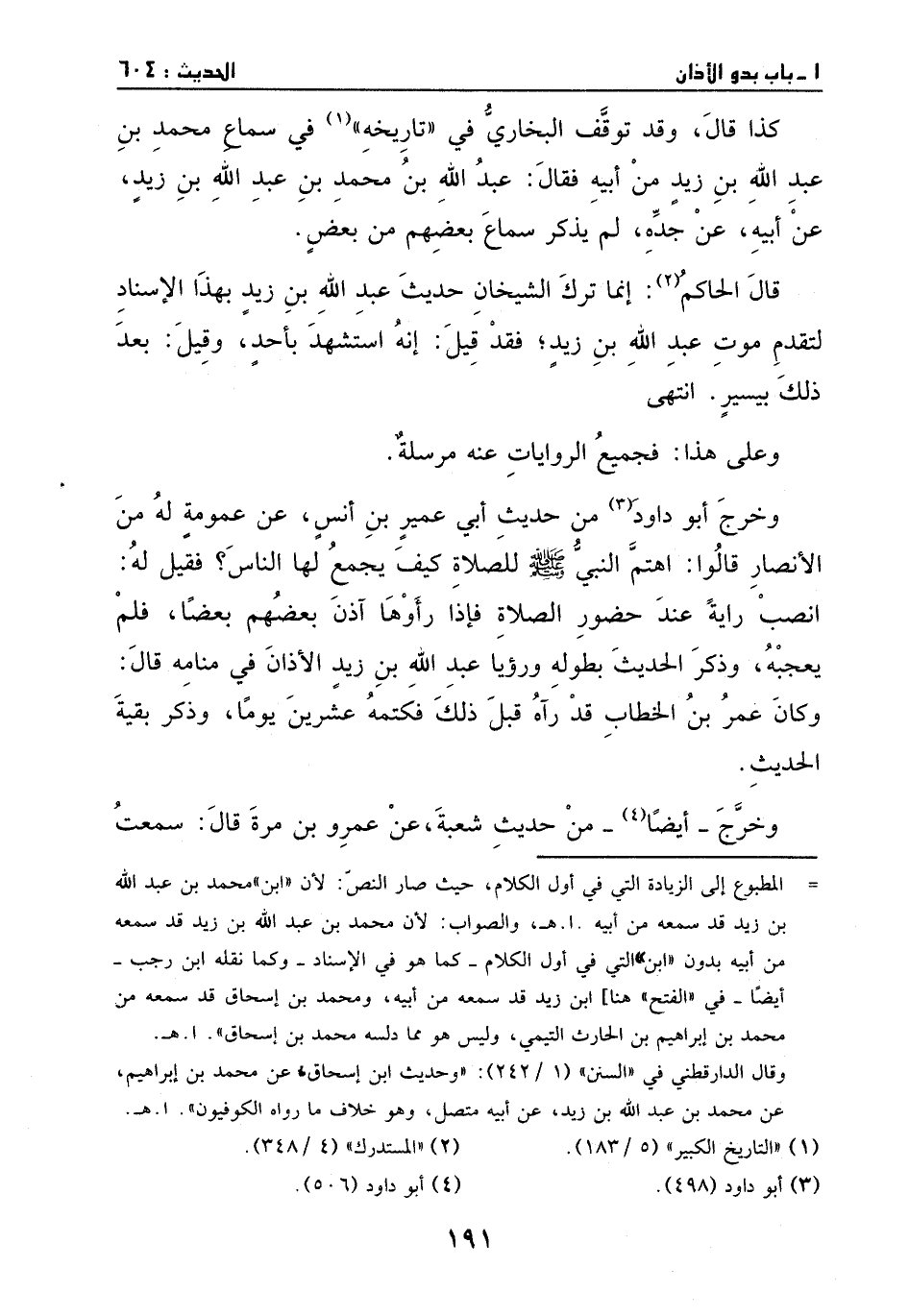 قال الحاكم: إنما ترك الشيخان حديث عبد الله بن زيد بهذا الإسناد؛ لتقدم موت عبد الله بن زيد، فقد قيل: إنه [استشهد بأحد] . وقيل: بعد ذلك بيسير. انتهى.