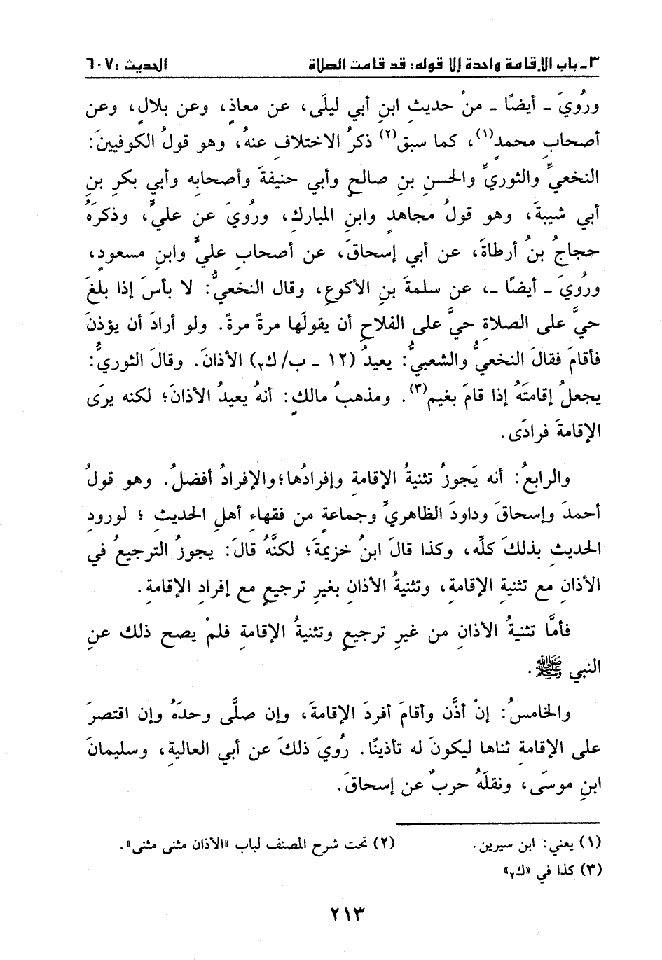 فأماتثنية الأذان من غير ترجيع وتثنية الإقامة، فلم يصح ذلك عن النبي - صَلَّى اللهُ عَلَيْهِ وَسَلَّمَ -.
