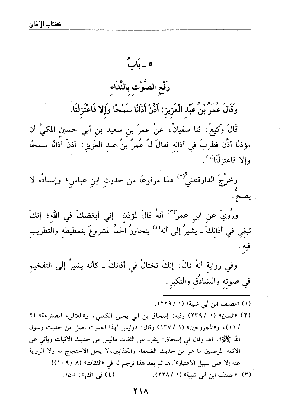 وروي عن ابن عمر، أنه قال لمؤذن: إني أبغضك في الله؛ إنك تبغي في أذانك.