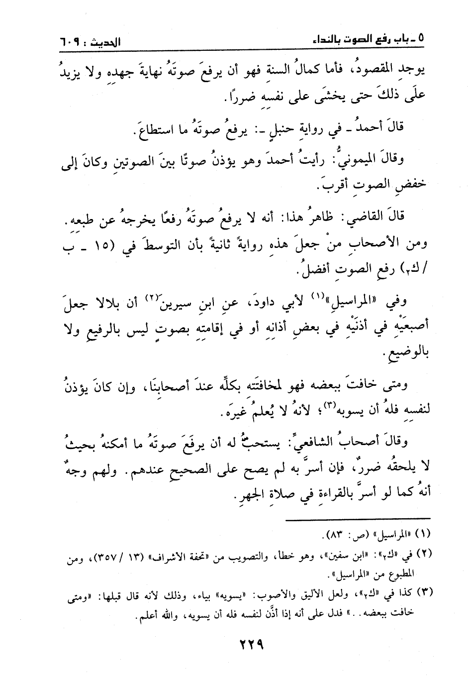 فأماكمال السنة فهو: أن يرفع صوته نهاية جهده، ولا يزيد على ذلك حتى يخشى على نفسه ضرراً.