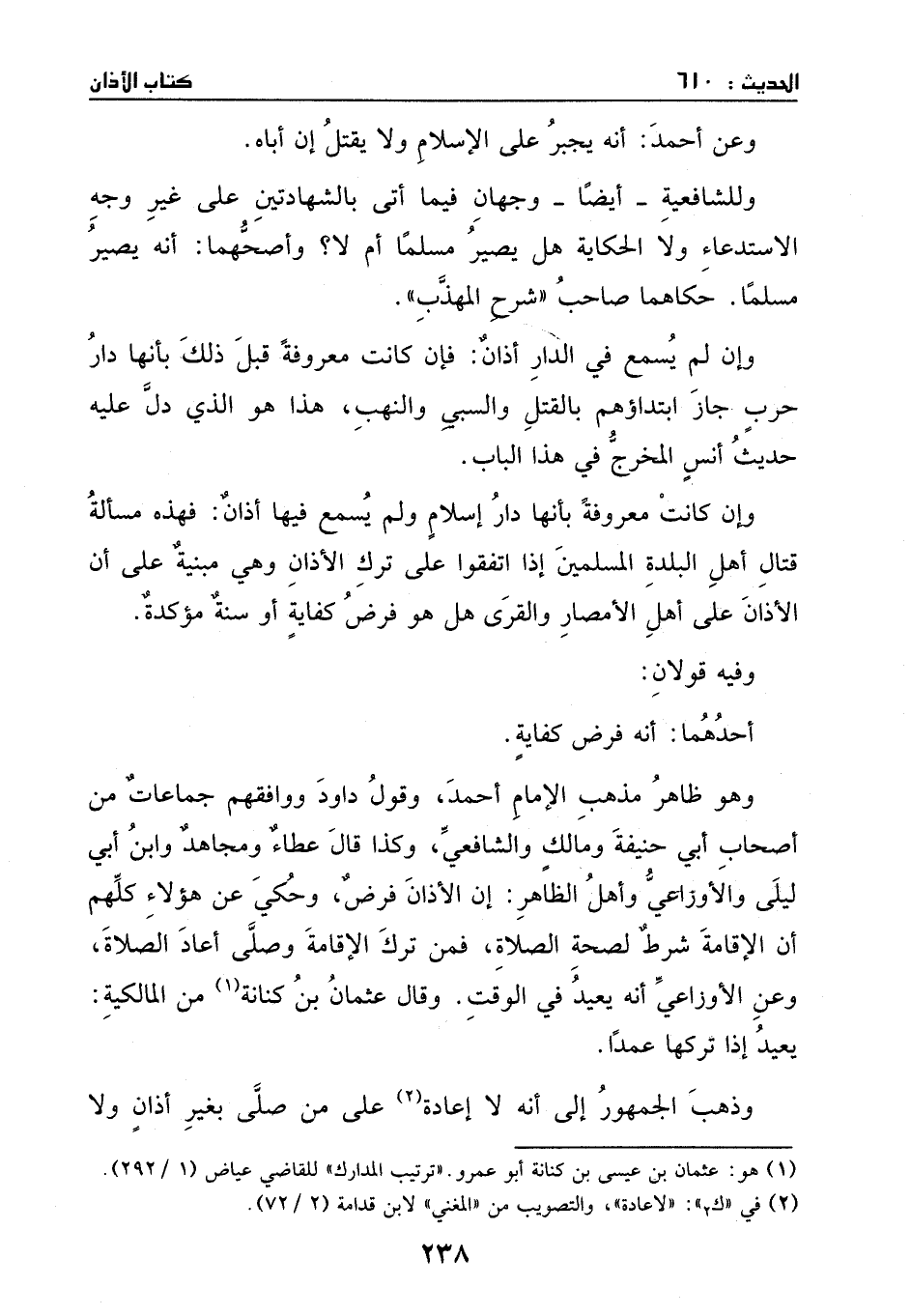 وهي مبنية على أن الأذان على أهل الأمصار والقرى: هل هو فرض كفاية، أو سنة مؤكدة؟