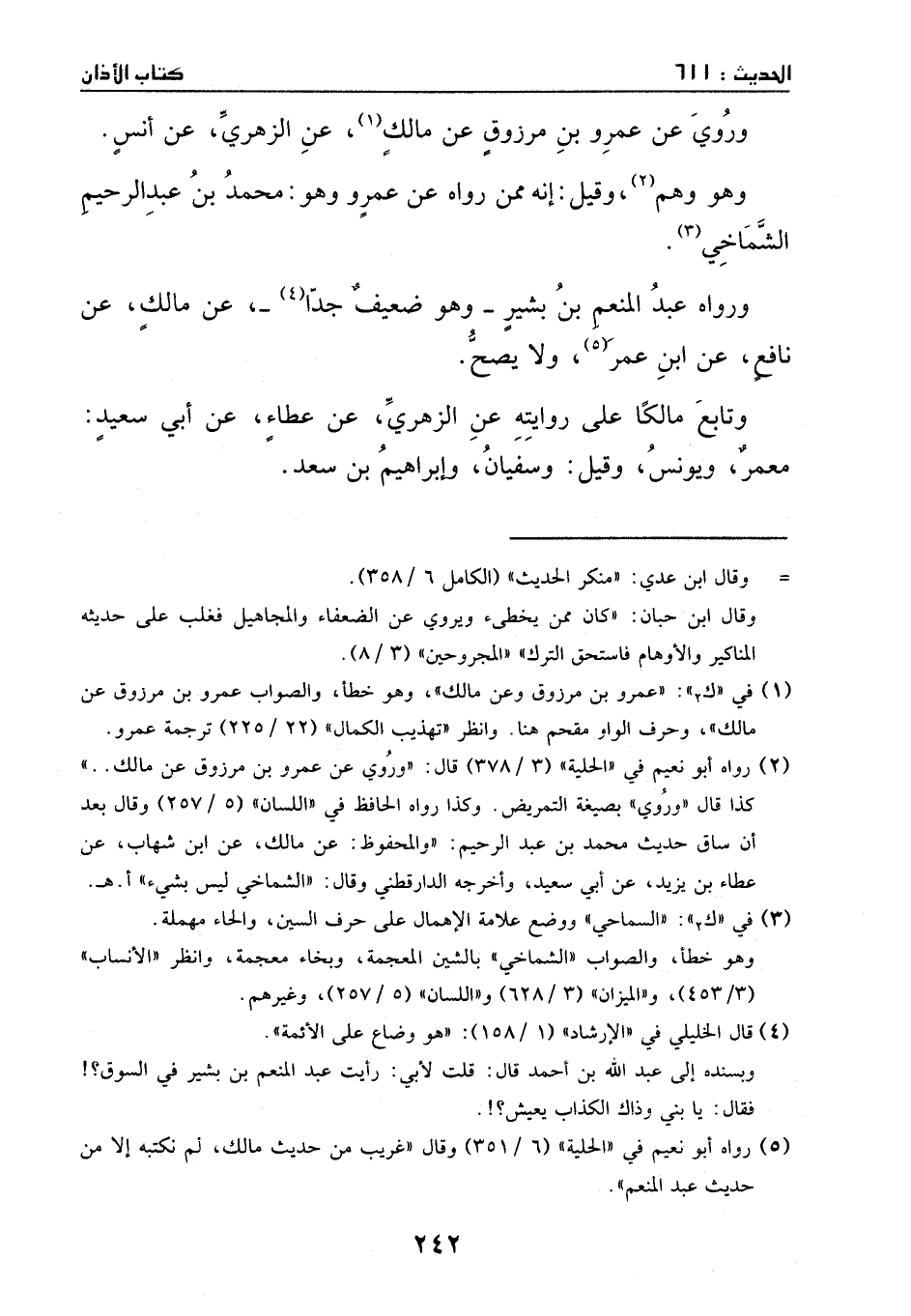 وروي عن عمرو بن مرزوق، عن مالك، عن الزهري، عن أنس.