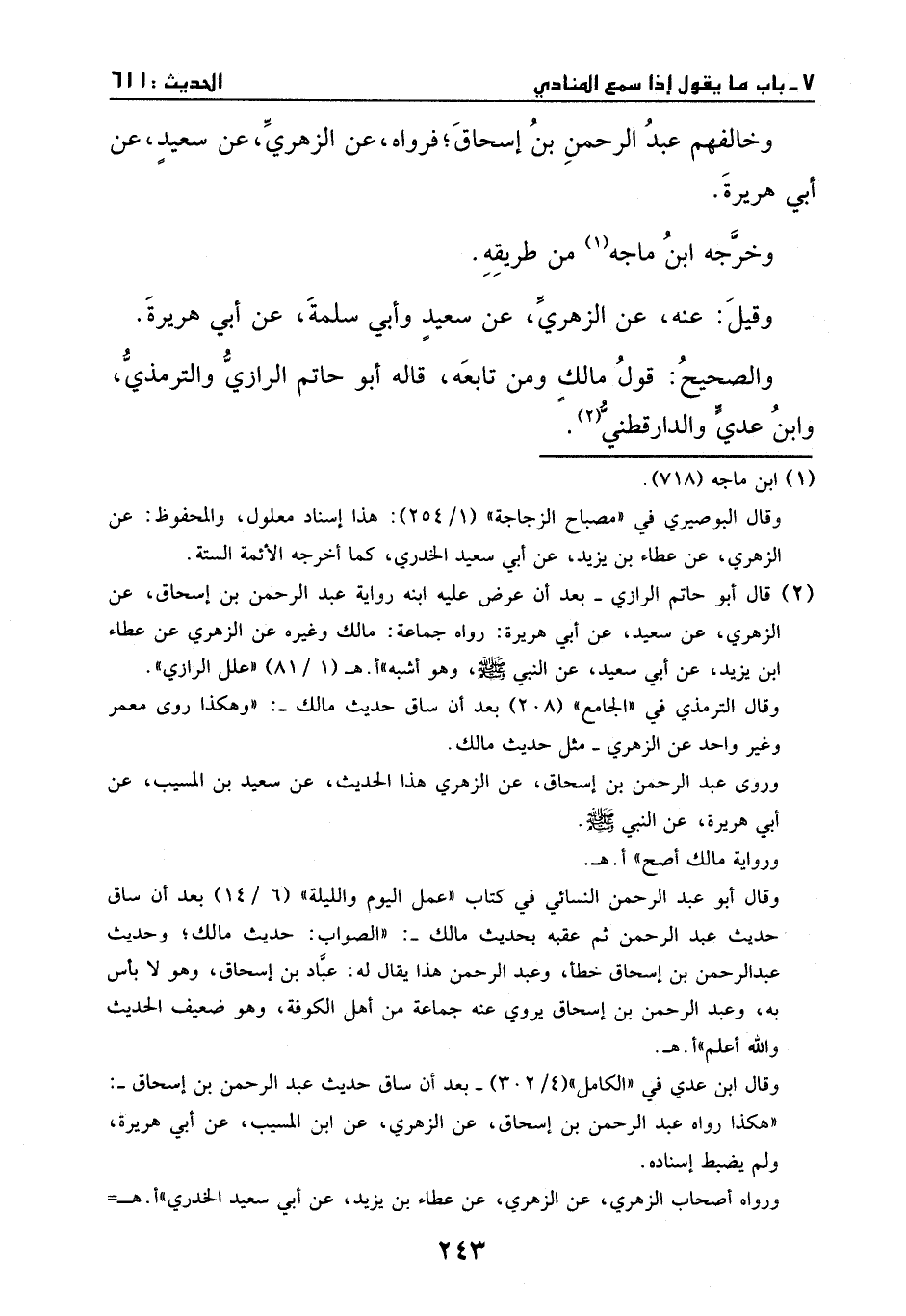 والصحيح: قول مالك ومن تابعه -: قاله أبو حاتم الرازي والترمذي وابن عدي والدارقطني.