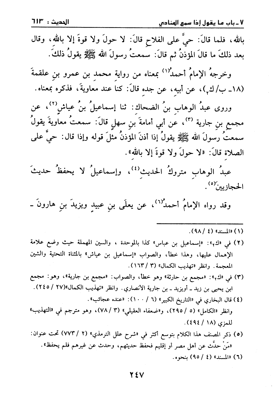 وروى عبد الوهاب بن الضحاك: ثنا إسماعيل بن عياش، عن مجمع بن جارية، عن أبي امامة بن سهل، قال: سمعت معاوية يقول: سمعت رسول الله - صَلَّى اللهُ عَلَيْهِ وَسَلَّمَ - يقول - إذا أذن المؤذن - مثل قوله، وإذا قال: (حي على الصلاة) قال: (لا حول ولا قوة إلا بالله) .