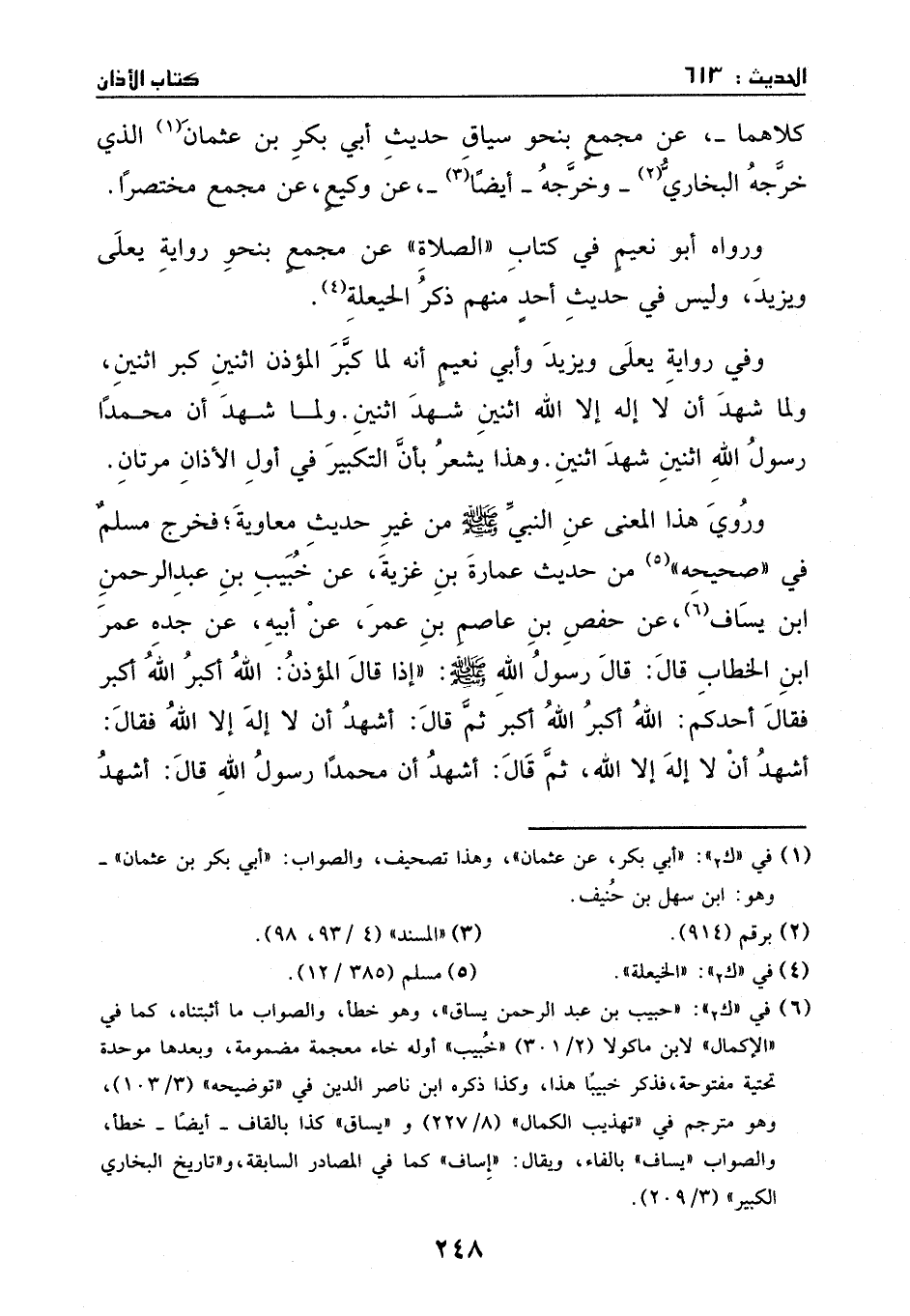 فخرج مسلم في "صحيحه" من حديث عمارة بن غزية، عن خبيب بن عبد الرحمن بن يساف، عن حفص بن عاصم بن عمر، عن أبيه، عن جده عمر بن الخطاب، قال: قال رسول الله - صَلَّى اللهُ عَلَيْهِ وَسَلَّمَ - ((إذا قال المؤذن: الله اكبر، الله اكبر، فقال احدكم، الله اكبر. ثم قال: اشهد ان لا اله الا الله، فقال اشهد ان لا اله الا الله. ثم قال: اشهد ان محمد رسول الله، قال: اشهد