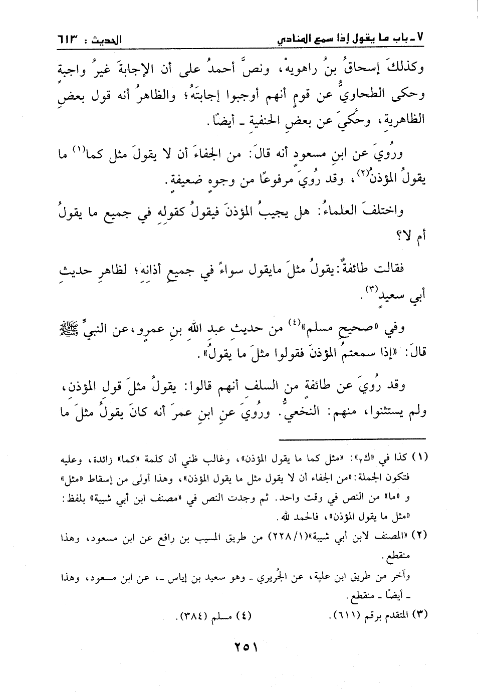 وفي "صحيح مسلم" من حديث عبد الله بن عمرو، عن النبي - صَلَّى اللهُ عَلَيْهِ وَسَلَّمَ -، قال: ((إذا سمعتم المؤذن فقولوا مثل ما يقول)) .