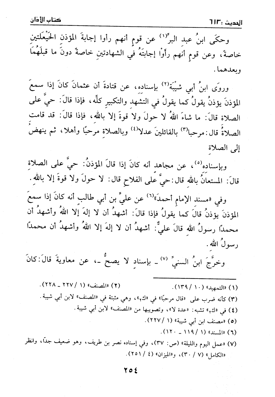 وبإسناده عن مجاهد، انه كان إذا قال المؤذن: (حي على الصلاة) قال: المستعان الله. [فاذا] قال: (حي على الفلاح) قال: لا حول ولا قوة الا بالله.