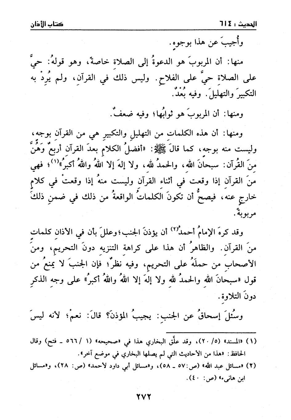 وسئل إسحاق عن الجنب يجيب المؤذن؟ قال: نعم؛ لانه ليس