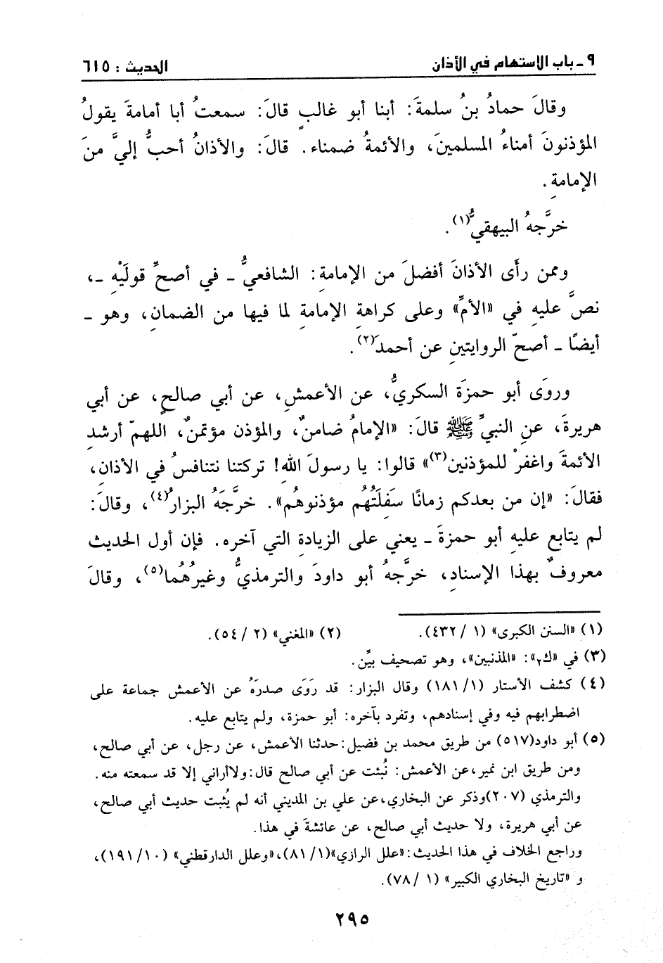 وقال حماد بن سلمة: ابنا ابو غالب، قال: سمعت ابا امامة يقول: المؤذنون امناء للمسلمين، والائمة ضمناء. قال: والاذان احب الي من الامامة.