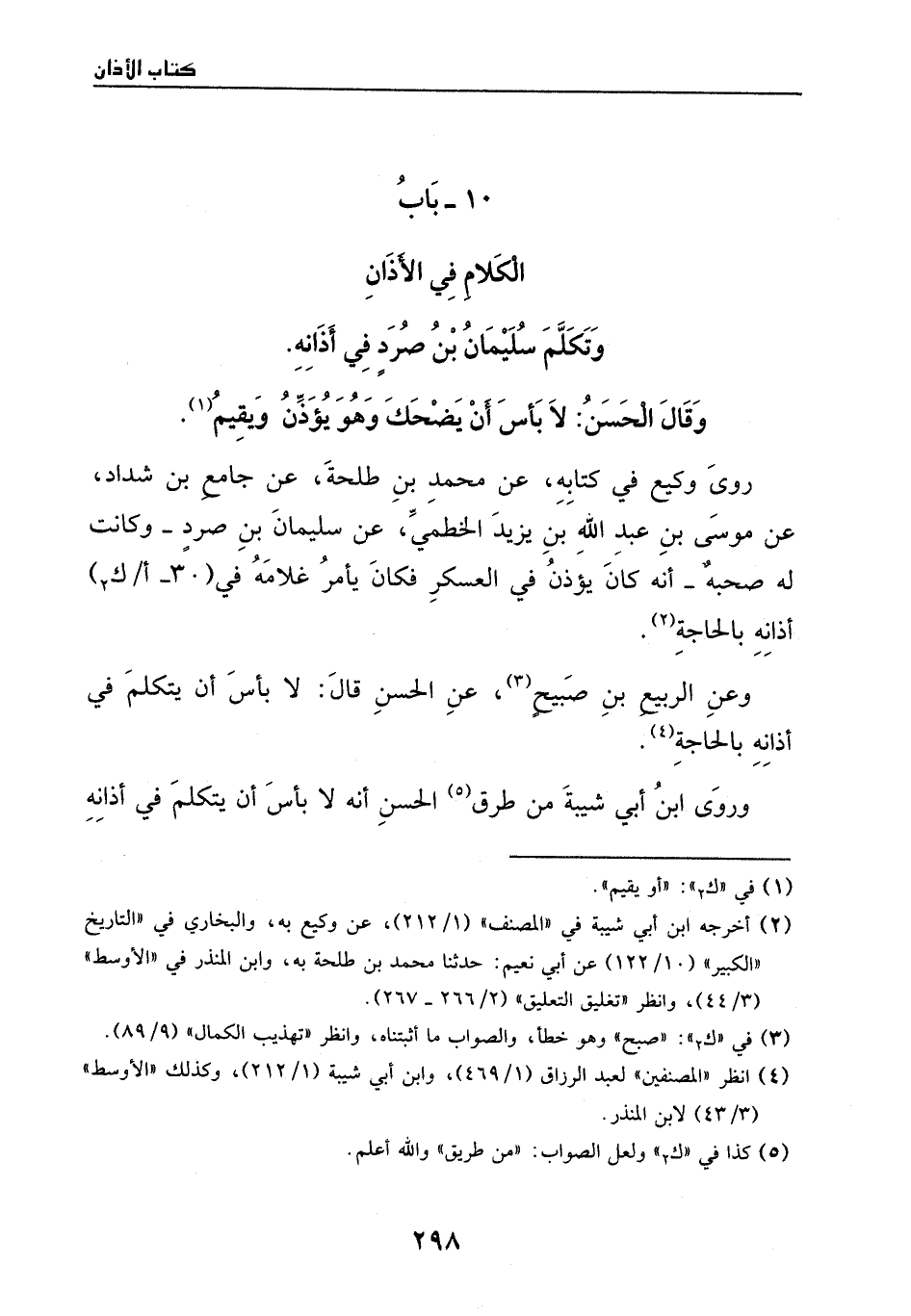 وعن الربيع بن صبيح، عن الحسن، قال: لا بأس أن يتكلم في أذانه بالحاجة.