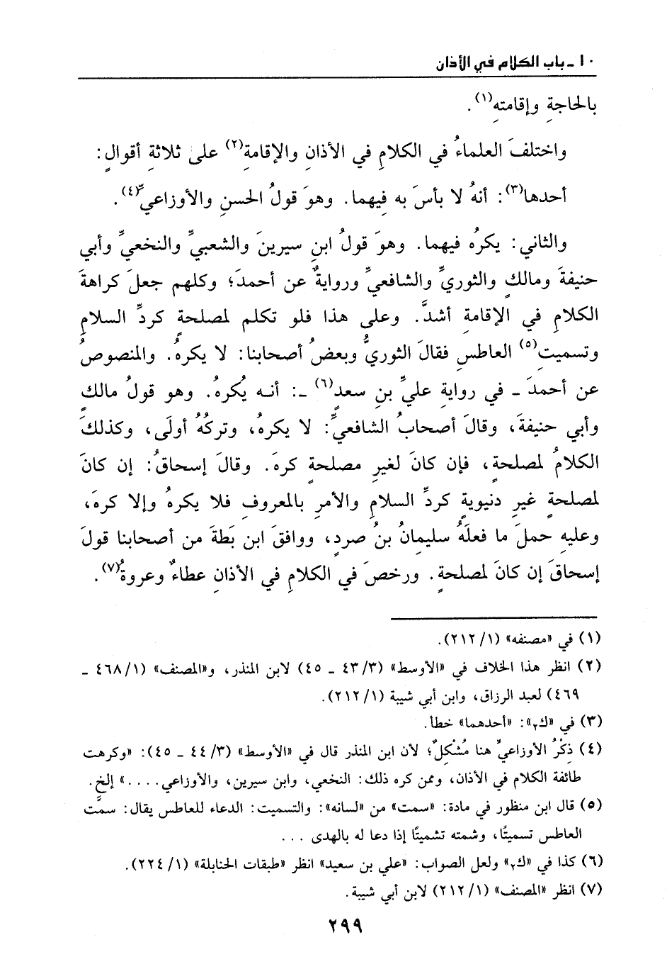 وأختلف العلماء في الكلام في الأذان والاقامة على ثلاثة أقوال: