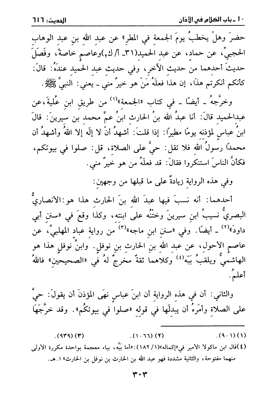 حضر، وهل يخطب يوم الجمعة في المطر؟)) عن عبد الله بن عبد الوهاب الحجبي، عن حماد، عن عبد الحميد وعاصم خاصة، وفصل حديث احدهما من حديث الاخر.
