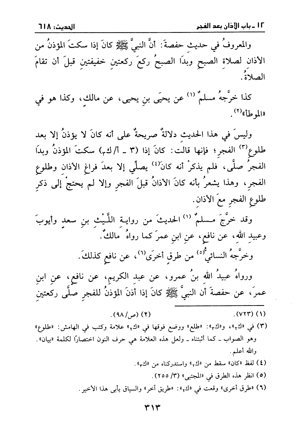 وليس في هذا الحديث دلالة صريحة على أنه كان لا يؤذن إلا بعد طلوع الفجر؛ فإنها قالت: ((كان إذا سكت المؤذن وبدا الفجر صلى)) ، فلم تذكر أنه [كان] يصلي إلا بعد فراغ الأذان بعد طلوع الفجر، وهذا يشعر بأنه كان الأذان قبل الفجر، وإلا لم تحتج إلى ذكر طلوع الفجر مع الأذان.