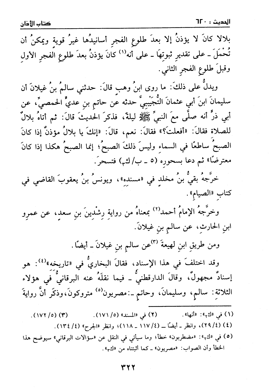 بلالاً كان لا يؤذن إلا بعد طلوع الفجر أسانيدها غير قوية، ويمكن ان تحمل - على تقدير ثبوتها - على أنه كان يؤذن بعد طلوع الفجر الأول، وقبل طلوع الفجر الثاني.