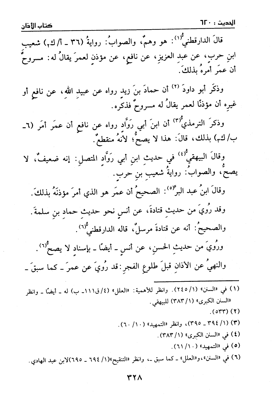 قال الدارقطني: هو وهم، والصواب: رواية شعيب بن حرب، عن عبد العزيز، عن نافع، عن مؤذن لعمر، يقال له: مسروح، أن عمر أمره بذلك.