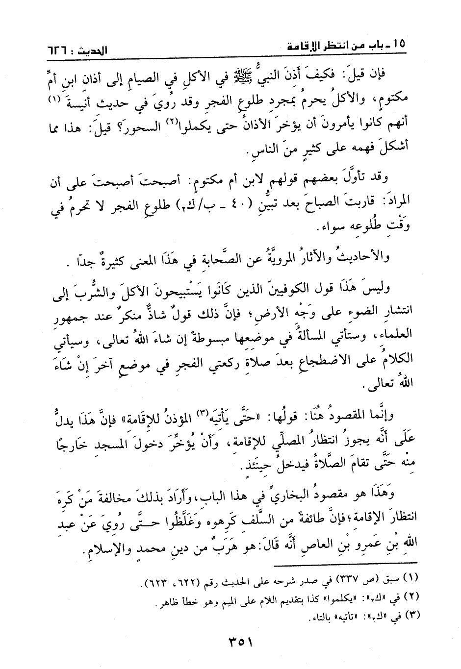 قيل: هذا مما أشكل فهمه على كثير من الناس، وقد تأول بعضهم قولهم لابن أم مكتوم: " أصبحت، أصبحت" على أن المراد قاربت الصباح [بعد تبين طلوع الفجر لا تحرم في وقت طلوعه سواء] .