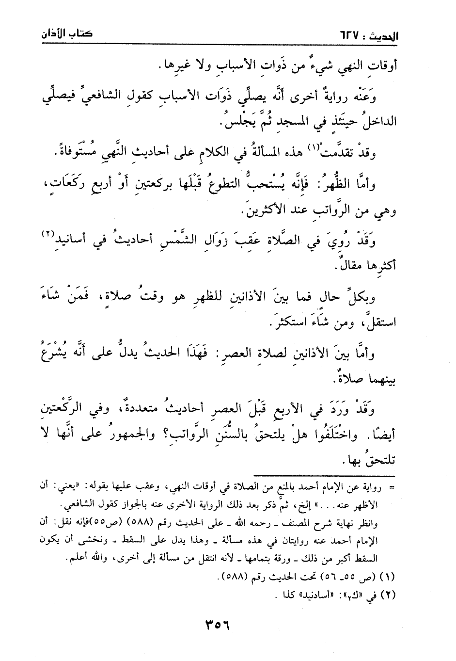 وأمابين الاذانين لصلاة العصر، فهذا الحديث يدل على انه يشرع بينهما صلاة، وقد ورد في الاربع قبل العصر أحاديث متعددة، وفي الركعتين - أيضا.