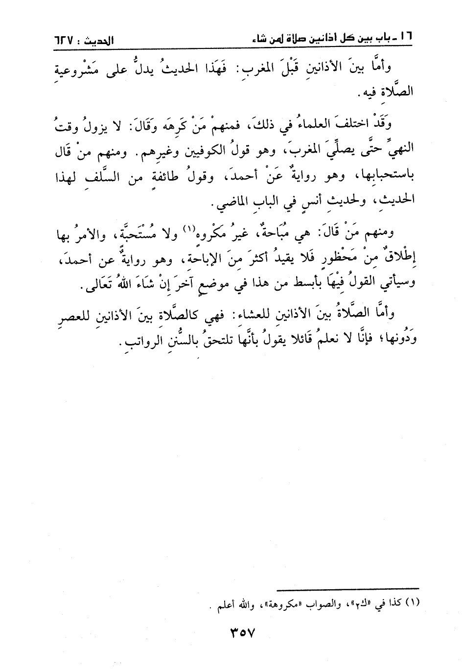 وأمابين الاذانين قبل المغرب، فهذا الحديث يدل على مشروعية الصلاة فيه.