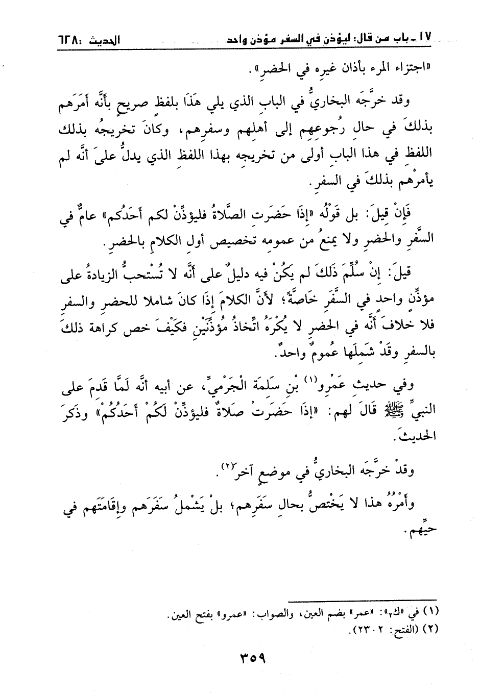 وقد خرجه البخاري في الباب الذي يلي هذا بلفظ صريح، بأنه أمرهم بذلك في حال رجوعهم إلى أهلهم وسفرهم، فكان تخريجه بذلك اللفظ في هذا الباب أولى من تخرجه بهذا اللفظ الذي يدل على انه لم يأمرهم بذلك في السفر.
