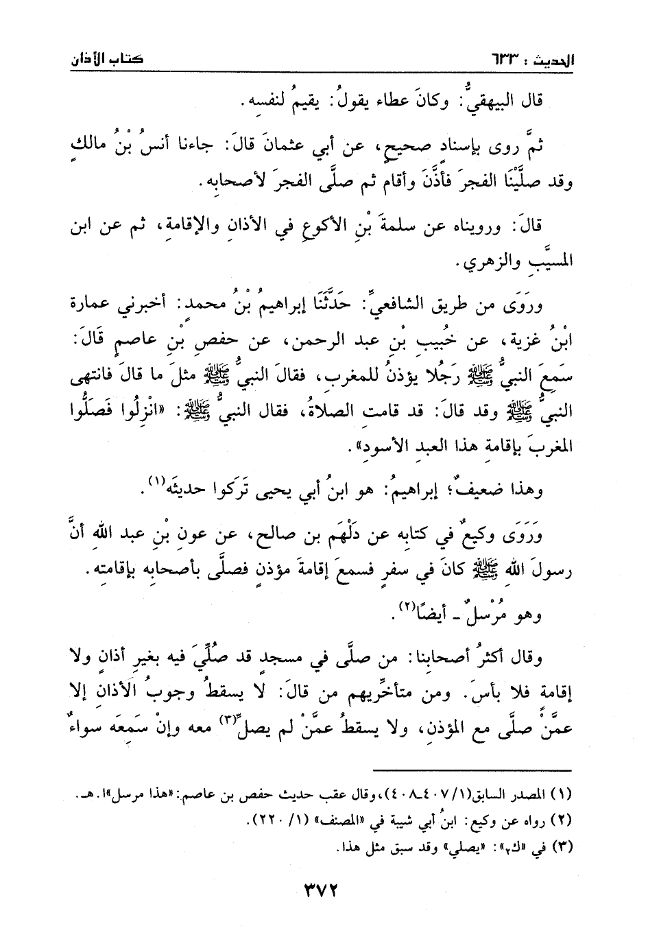 قال ورويناه عن سلمة بن الأكوع في الأذان والإقامة، ثم عن ابن المسيب والزهري.