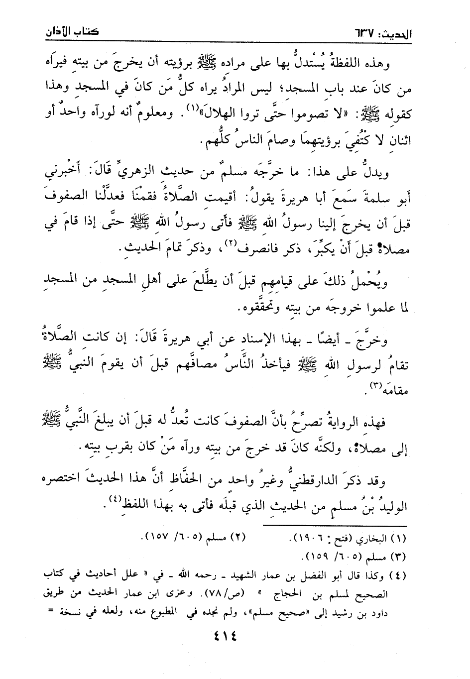 فهذه الرواية تصرح بأن الصفوف كانت تعدل قبل ان يبلغ النبي - صَلَّى اللهُ عَلَيْهِ وَسَلَّمَ - إلى مصلاه، ولكن كان قد خرج من بيته، ورآه من كان بقرب بيته.