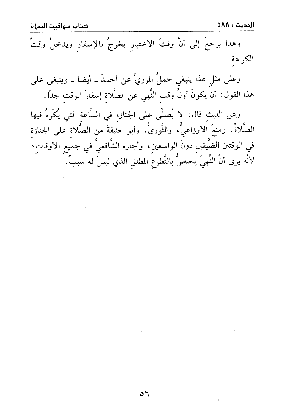 وعن الليث، قال: لا يصلي على الجنازة في الساعة التي تكره فيها الصلاة.