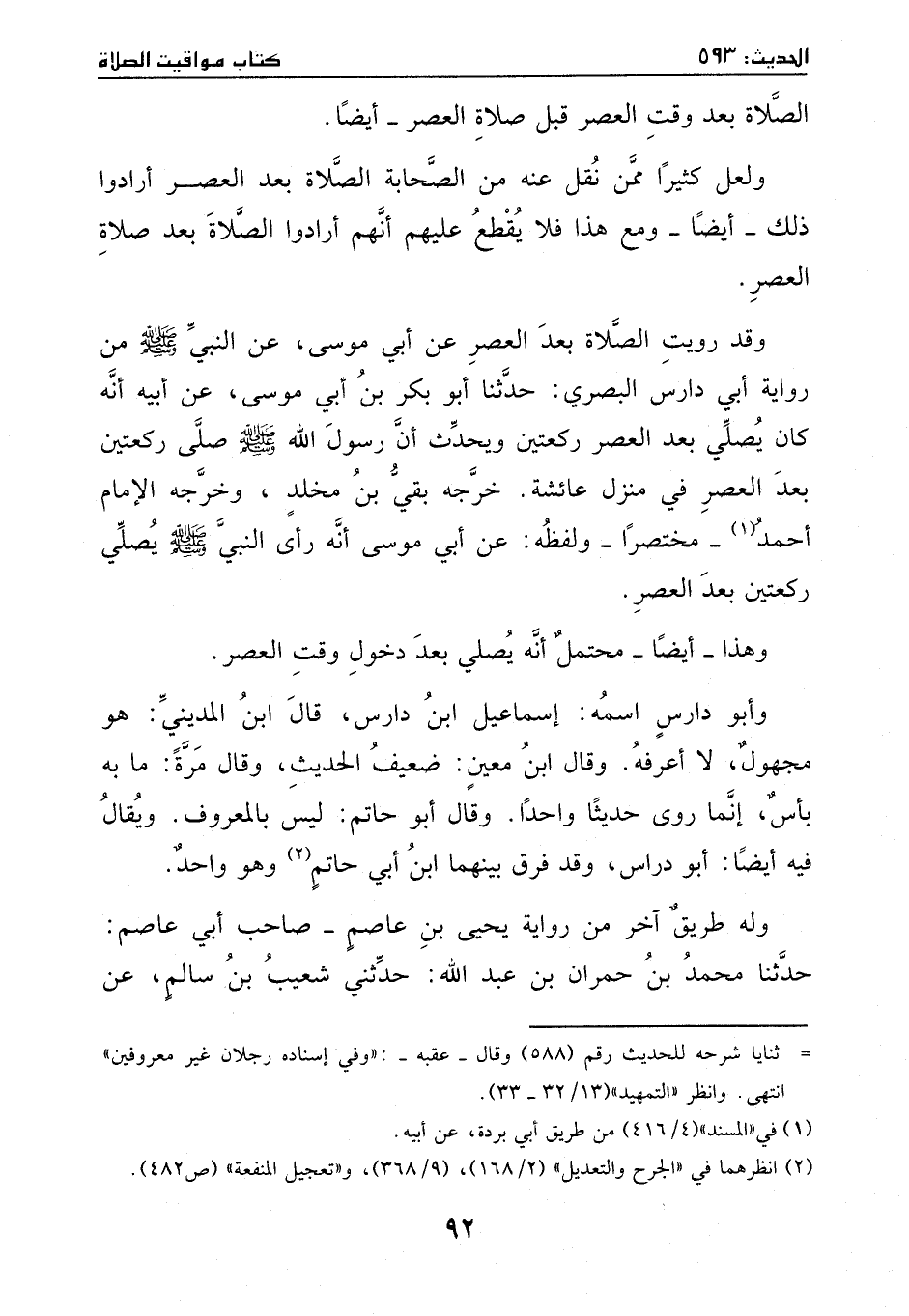 وقد رويت الصلاة بعد العصر عن أبي موسى، عن النبي - صَلَّى اللهُ عَلَيْهِ وَسَلَّمَ -، من رواية أبي دارس النصري: حدثنا أبو بكر بن أبي موسى، عن أبيه، أنه كان يصلي بعد العصر ركعتين، ويحدث أن رسول الله - صَلَّى اللهُ عَلَيْهِ وَسَلَّمَ - صلى ركعتين بعد العصر في منزل عائشة.