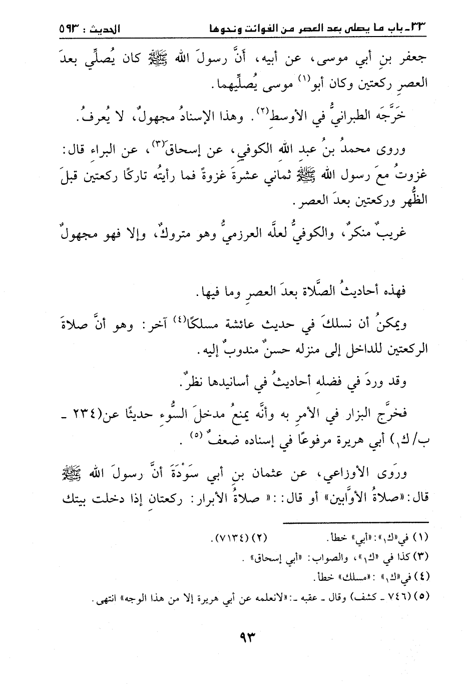 جعفر بن أبي موسى، عن أبيه، أن رسول الله - صَلَّى اللهُ عَلَيْهِ وَسَلَّمَ - كان يصلي بعد العصر ركعتين، وكان أبو موسى يصليهما.