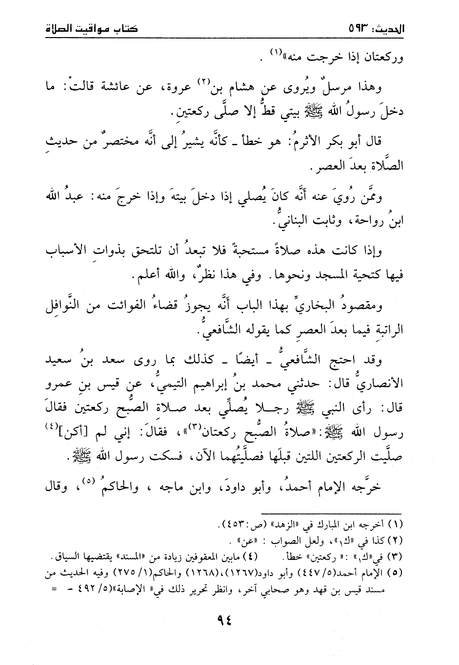 وقد احتج الشافعي – أيضا – لذلك: بما روى سعد بن سعيد الأنصاري، قال: حدثني محمد بن إبراهيم التيمي، عن قيس بن عمرو، قال: رأى النبي - صَلَّى اللهُ عَلَيْهِ وَسَلَّمَ - رجلاً يصلي بعد صلاة الصبح ركعتين، فقال رسول الله - صَلَّى اللهُ عَلَيْهِ وَسَلَّمَ -: (صلاة الصبح ركعتان) ، فقال: إني لم [أكن] صليت الركعتين اللتين قبلها، فصليتهما الآن، فسكت رسول الله - صَلَّى اللهُ عَلَيْهِ وَسَلَّمَ -.