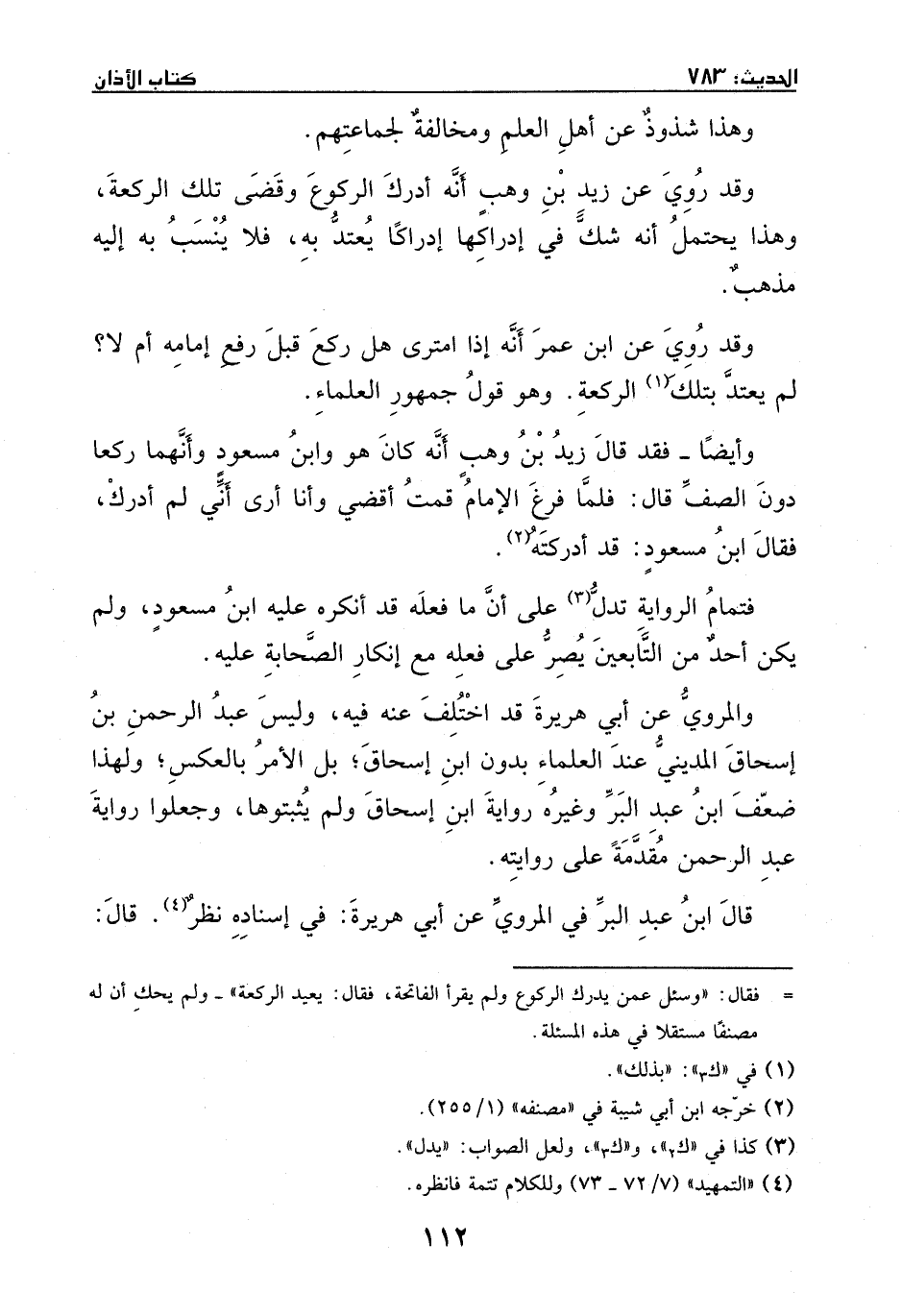 وقد روي عن زيد بن وهب، أنه أدرك الركوع وقضى تلك الركعة، وهذا يحتمل أنه شك في إدراكها إدراكاً يعتد به، فلا ينسب به إليه مذهب.