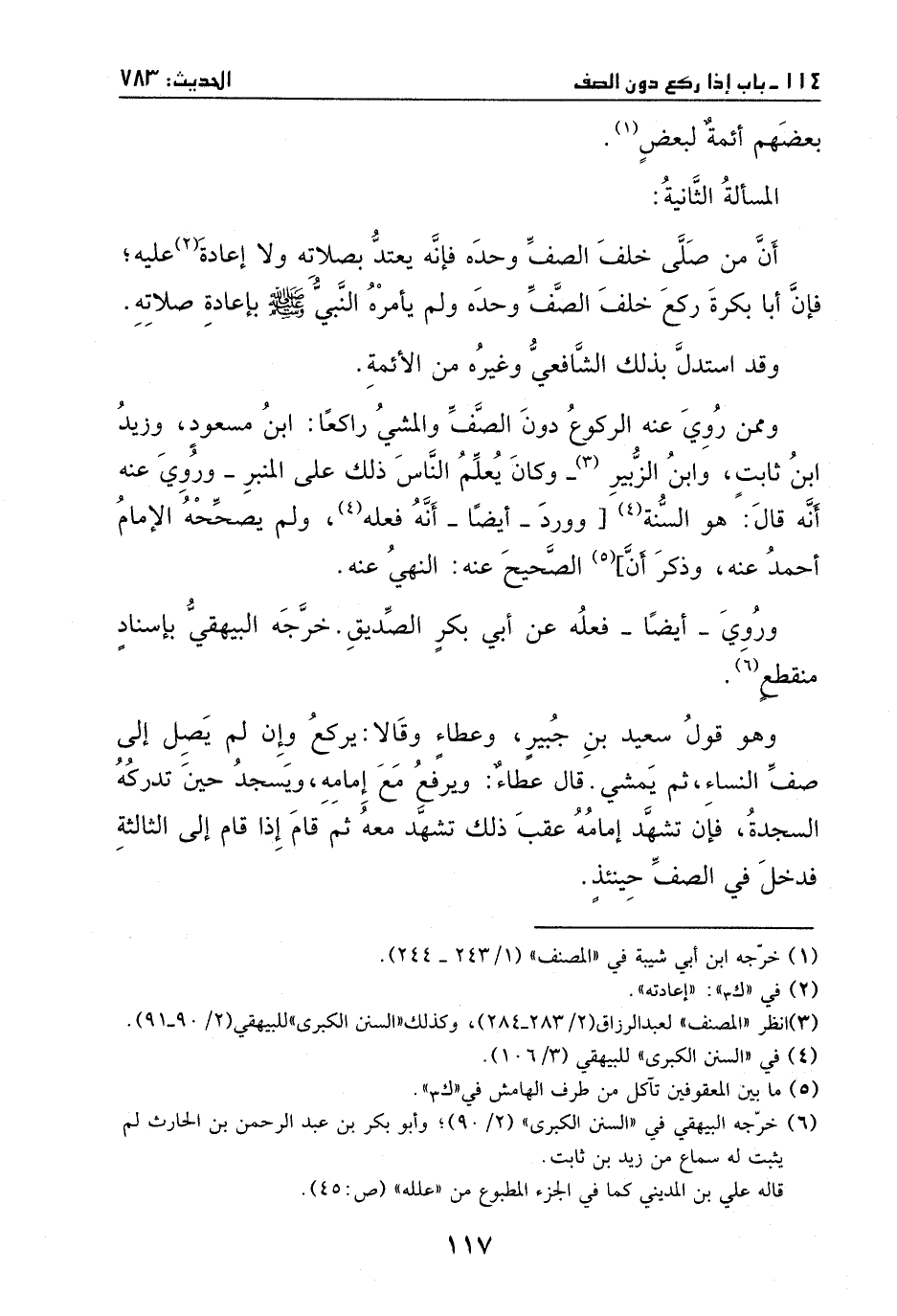 وممن روي عنه الركوع دون الصف والمشي راكعاً: ابن مسعودٍ وزيد بن ثابتٍ وابن الزبير، وكان يعلّم الناس ذلك على المنبر.