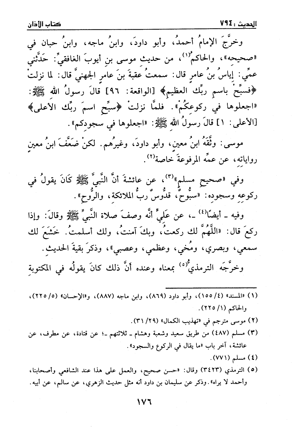 وخرَّج الإمام أحمد وأبو داود وابن ماجه وابن حبان في ((صحيحه)) والحاكم من حديث موسى بن أيوب الغافقي: حدثني عمي إياس بن عامر، قال: سمعت عقبة بن عامر الجهني، قال: لما نزلت {فَسَبِّحْ بِاسْمِ رَبِّكَ الْعَظِيمِ} . قال رسول الله - صَلَّى اللهُ عَلَيْهِ وَسَلَّمَ -: