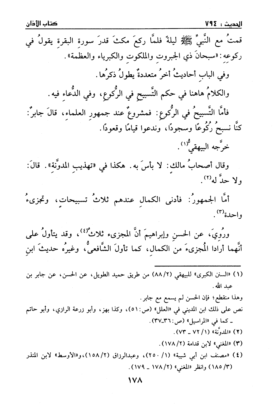 قال جابر: كنا نسبح ركوعاً وسجوداً، وندعو قياماً وقعوداً.