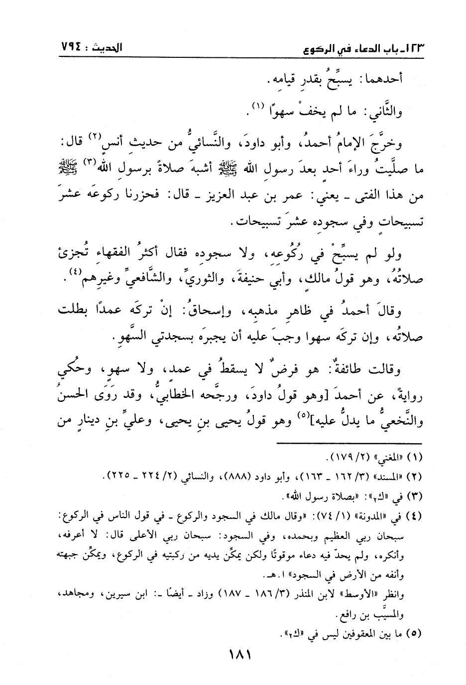 وخرَّج الإمام أحمد وأبو داود والنسائي من حديث أنس، قال: ما صليت وراء أحد بعد رسول الله - صَلَّى اللهُ عَلَيْهِ وَسَلَّمَ - أشبه صلاة برسول الله - صَلَّى اللهُ عَلَيْهِ وَسَلَّمَ - من هذا الفتى – يعني: عمر بن عبد العزيز –قال: فحزرنا في ركوعه عشر تسبيحات، وفي سجوده عشر تسبيحات.