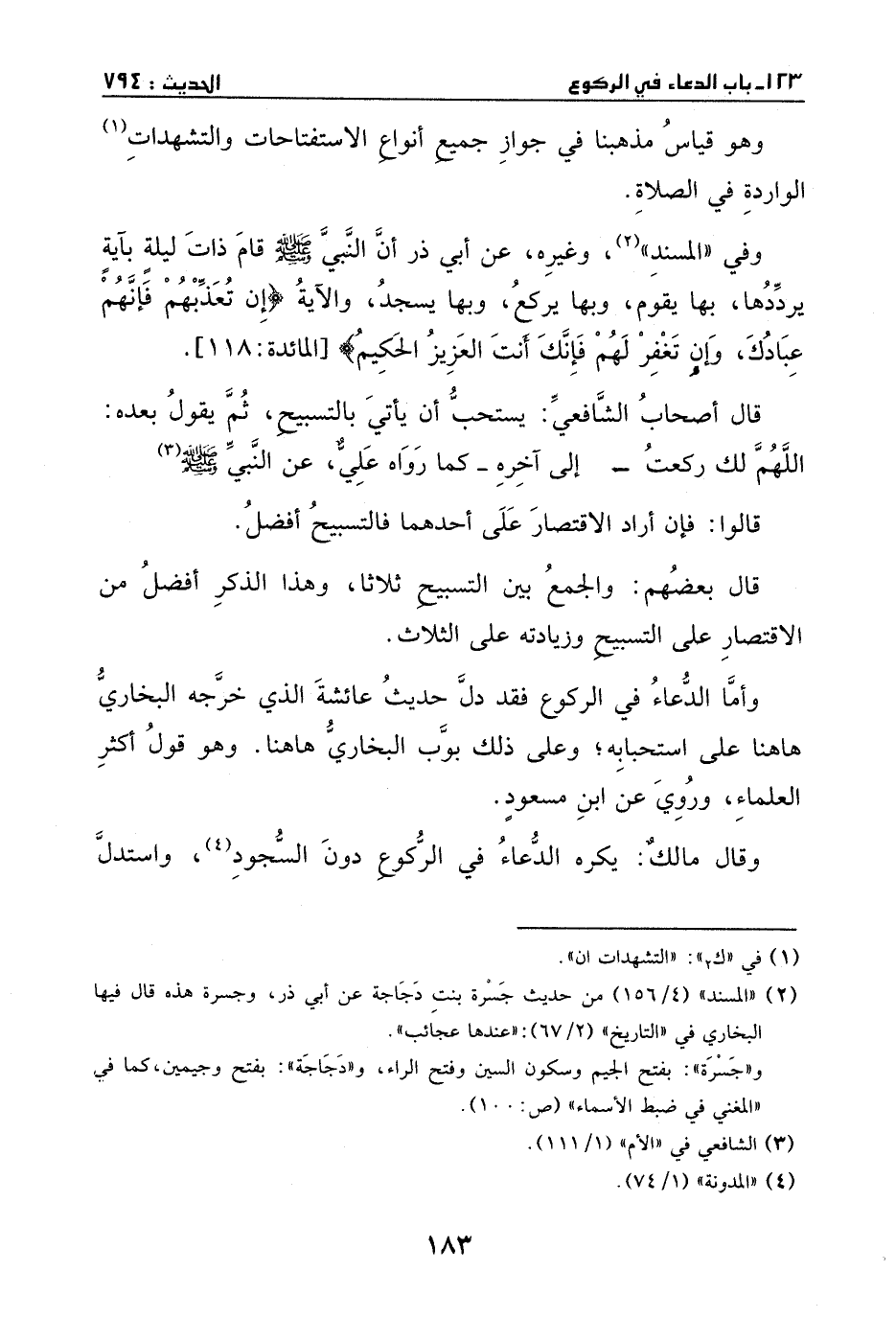 وأما الدعاء في لركوع، فقد دل حديث عائشة الذي خرَّجه البخاري هاهنا على استحبابه، وعلى ذلك بوب البخاري هاهنا، وهو قول أكثر العلماء.