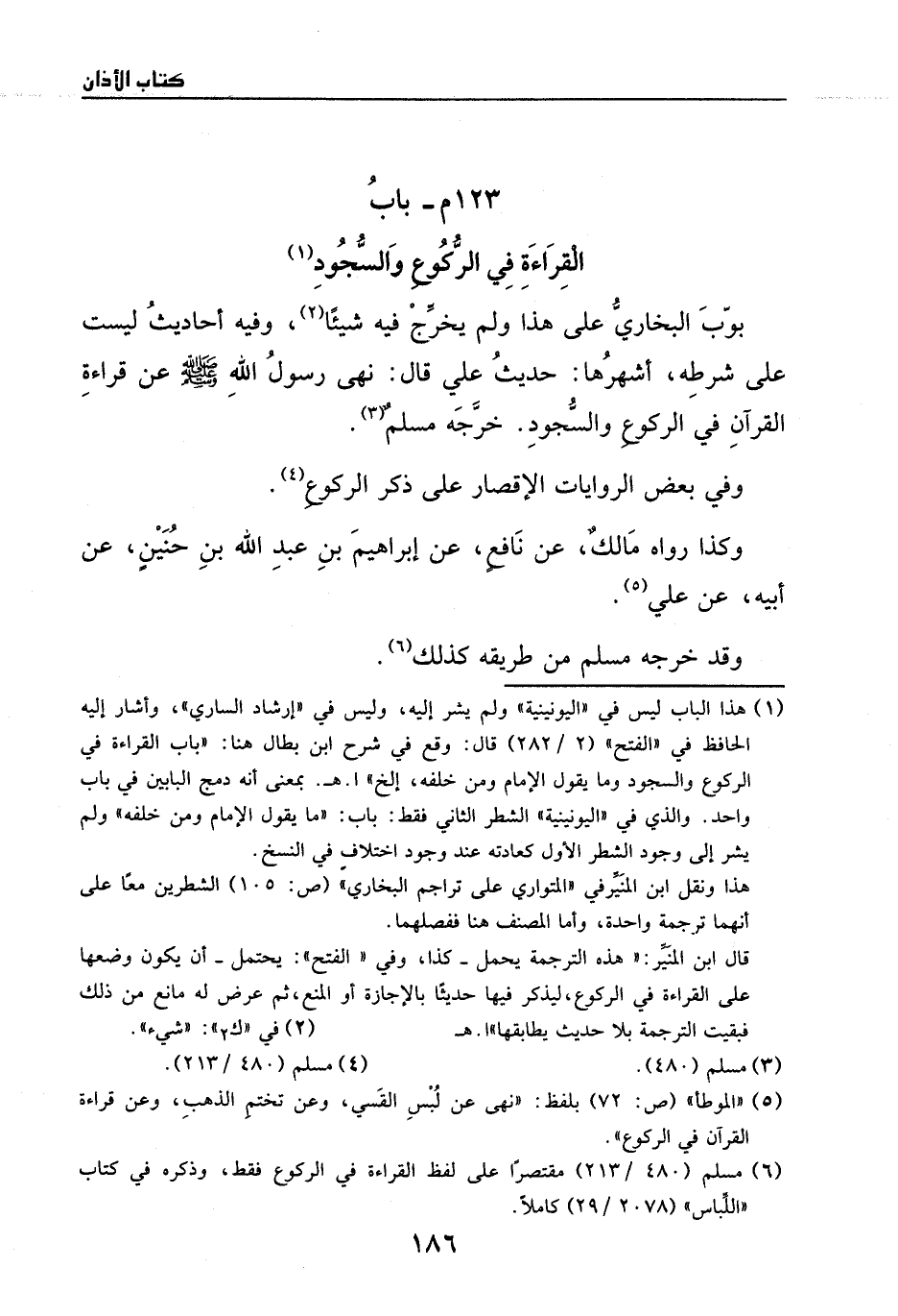 أشهرها: حديث علي، قال: نهى رسول الله - صَلَّى اللهُ عَلَيْهِ وَسَلَّمَ - عن قراءة القرآن في الركوع والسجود.
