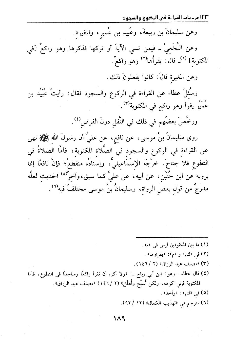 روى سليمان بن موسى، عن نافع، عن علي، أن رسول الله - صَلَّى اللهُ عَلَيْهِ وَسَلَّمَ - نهى عن القراءة في الركوع والسجود في الصلاة المكتوبة، فأما الصلاة في التطوع، فلا جناح.