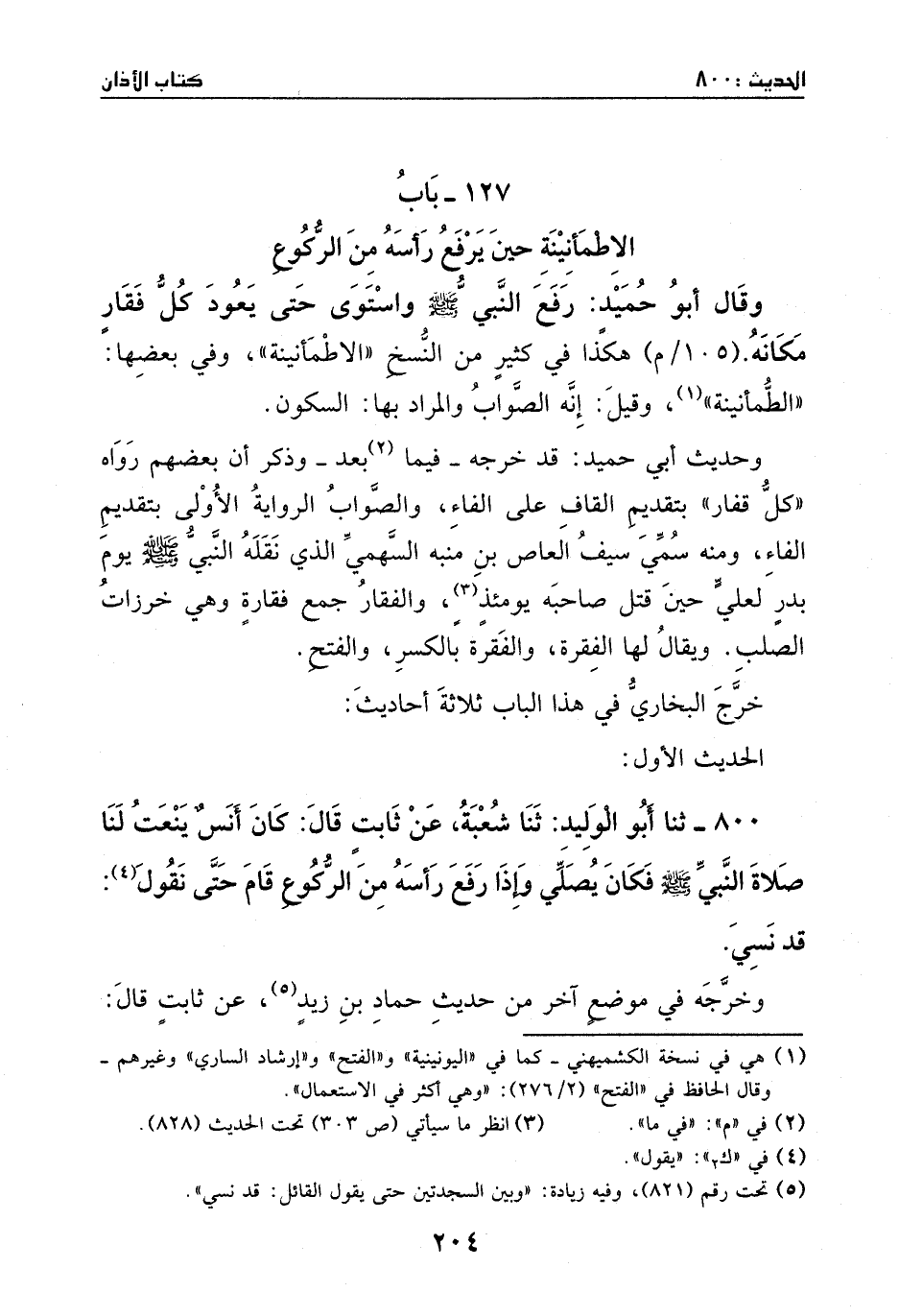 وقال أبو حميد: رفع النبي - صَلَّى اللهُ عَلَيْهِ وَسَلَّمَ - واستوى حتى يعود كل فقار مكانه.