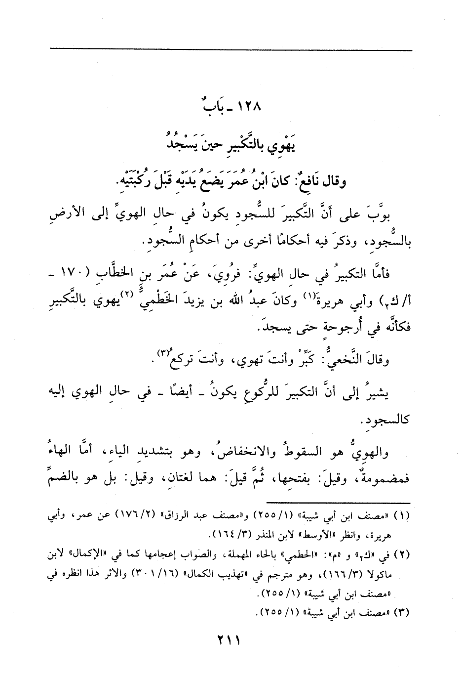 وكان عبد الله بن يزيد الخطمي يهوي بالتكبير، فكانه في أرجوحة حتى يسجد.