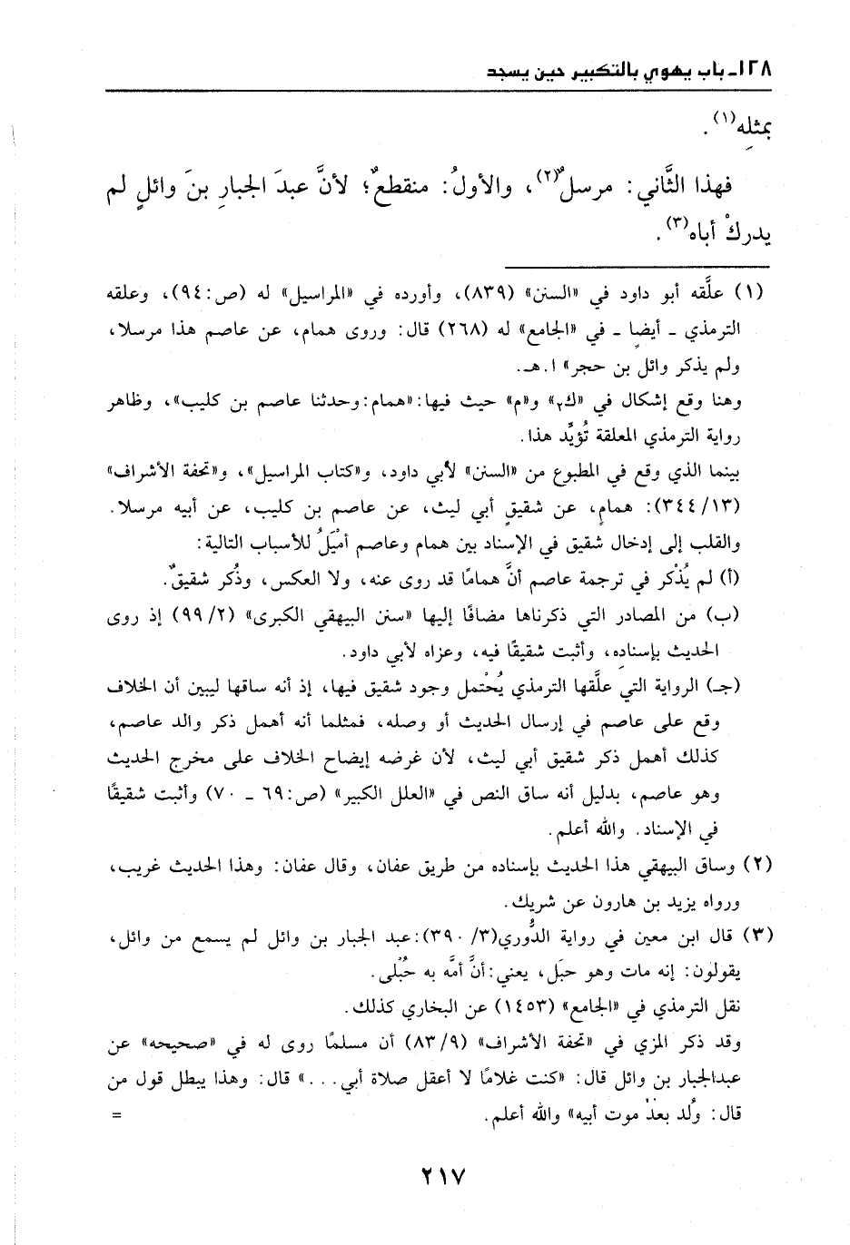 فهذا الثاني مرسل، والأول منقطع، لأن عبد الجبار بن وائل لم يدرك أباه.