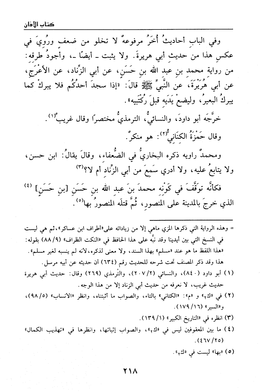 ومحمد راويه، ذكره البخاري في ((الضعفاء)) ، وقال: يقال: ابن حسن، ولا يتابع عليه، ولا أدري سمع من أبي الزناد، أم لا؟