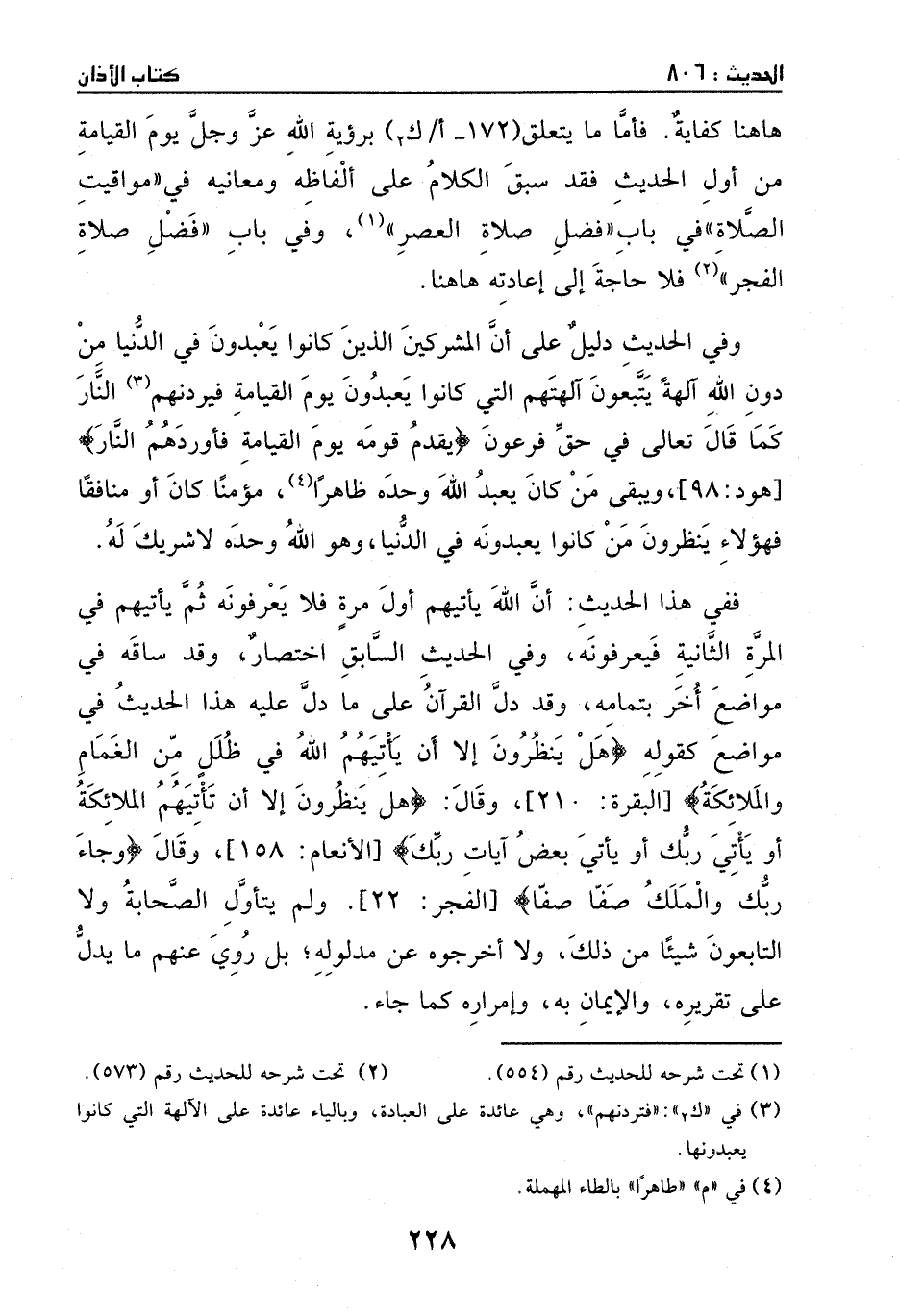 وقد دل القرآن على ما دل عليه هذا الحديث في مواضع، كقوله: {هَلْ يَنظُرُونَ إِلاَّ أَن يَأْتِيَهُمُ اللَّهُ فِي ظُلَلٍ مِّنَ الغَمَامِ وَالْمَلائِكَةُ?} [البقرة:210] . وقال: {هَلْ يَنظُرُونَ إِلاَّ أَن تَأْتِيَهُمُ المَلائِكَةُ أَوْ يَأْتِيَ رَبُّكَ أَوْ يَأْتِيَ بَعْضُ آيَاتِ رَبِّكَ} [الأنعام:
