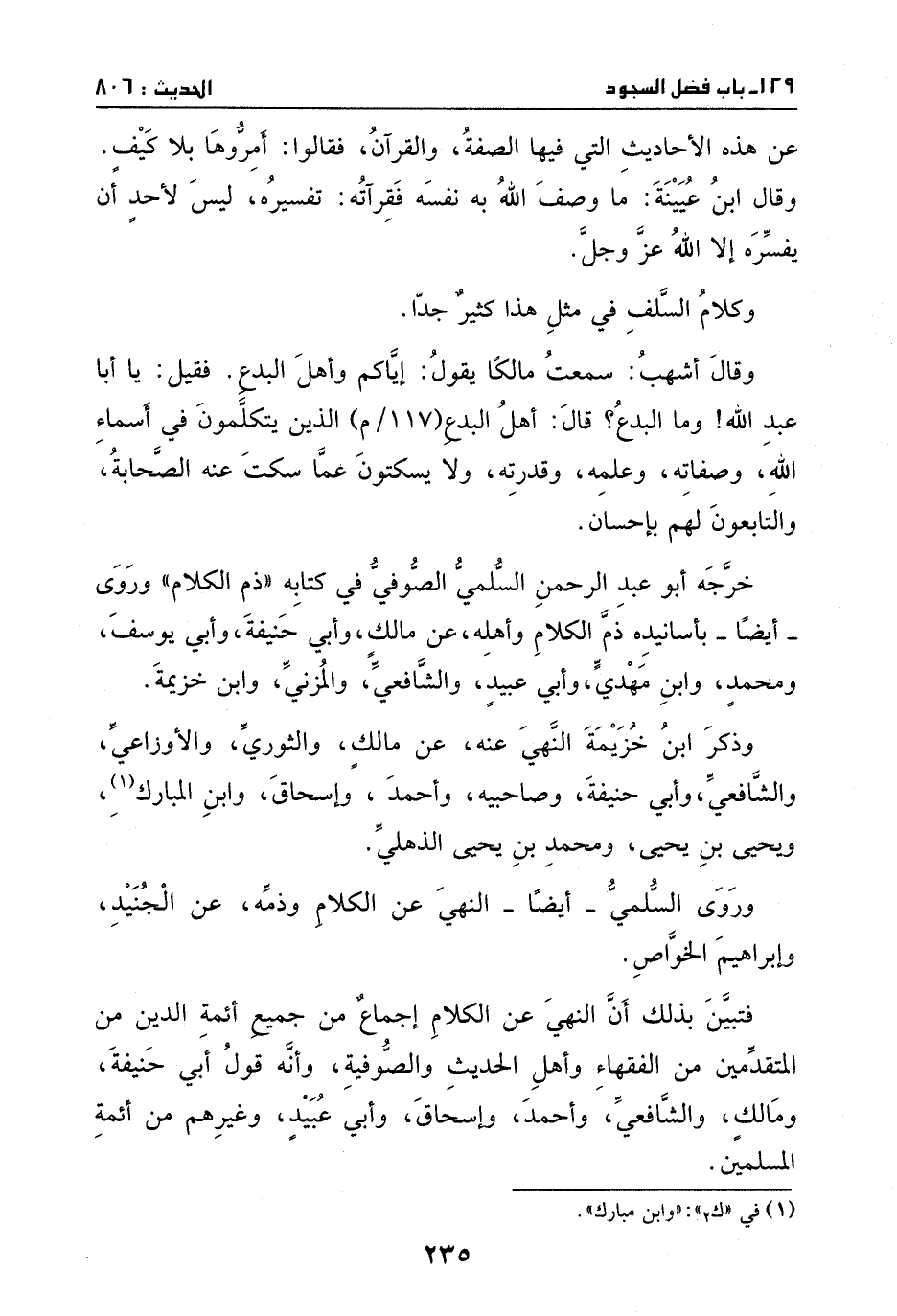 فتبين بذلك أن النهي عن الكلام إجماع من جميع أئمة الدين من المتقدمين من الفقهاء وأهل الحديث والصوفية، وأنه قول أبي حنيفة ومالك والشافعي وأحمد وإسحاق وأبي عبيد وغيرهم من أئمة المسلمين.