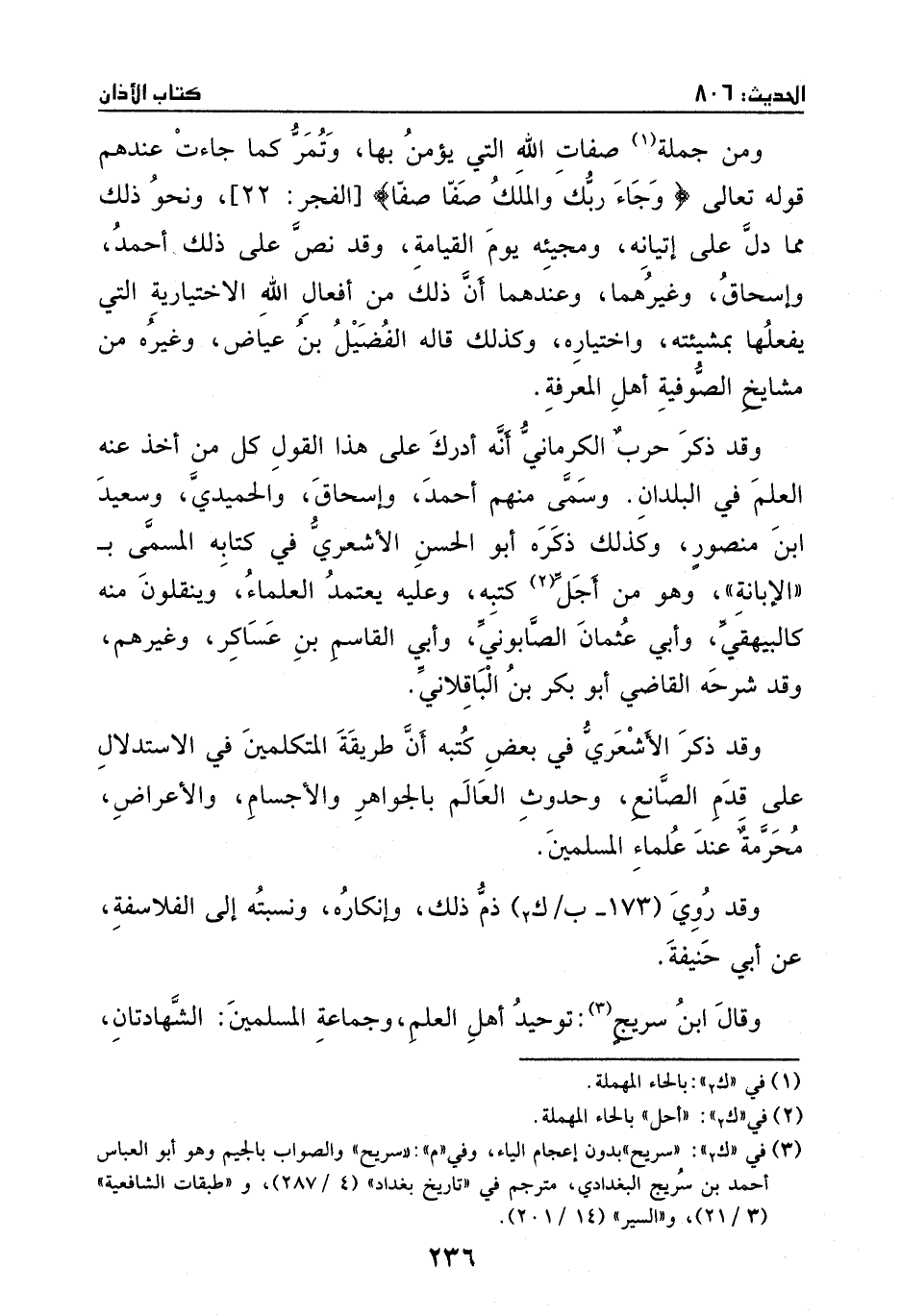 وكذلك ذكره أبو الحسن الأشعري في كتابه المسمى بـ – الإبانة -، وهو من أجل كتبه، وعليه يعتمد العلماء وينقلون منه، كالبيهقي وأبي عثمان الصابوني وأبي القاسم ابن عساكر وغيرهم.