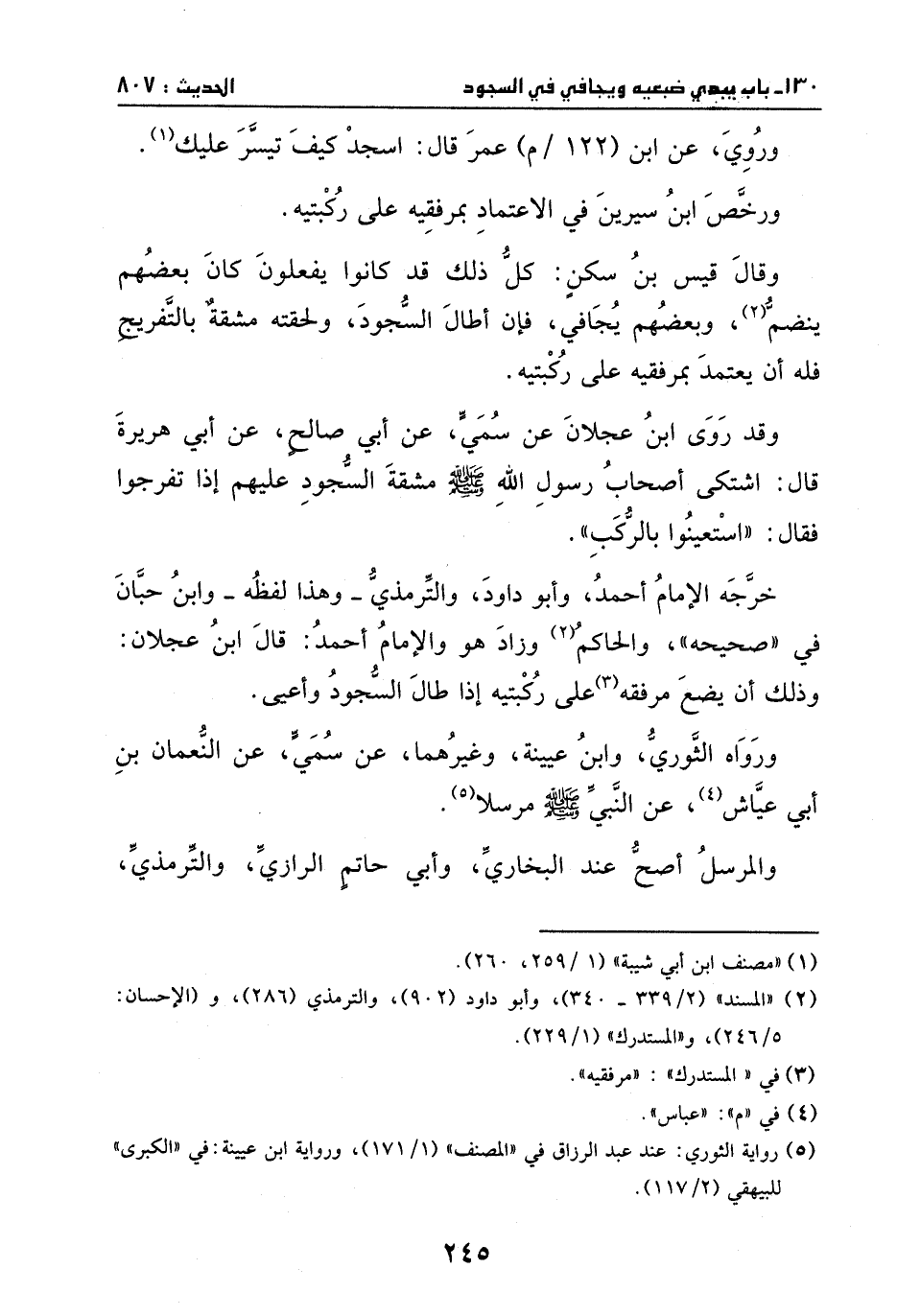 ورخص ابن سيرين في الاعتماد بمرفقيه على ركبتيه.