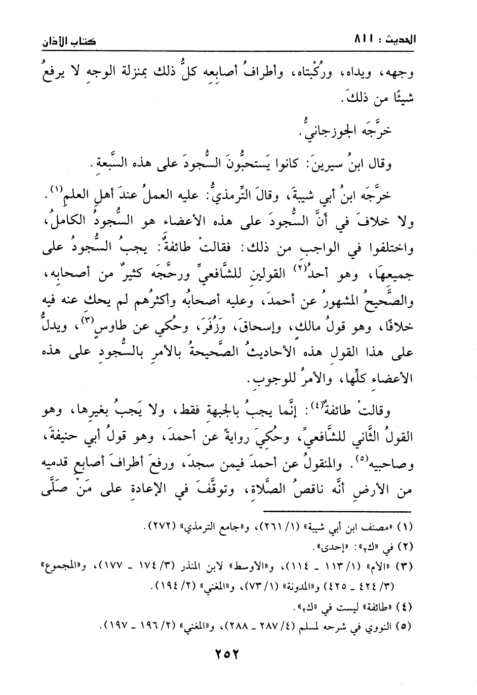 وقال ابن سيرين: كانوا يستحبون السجود على هذه السبعة.