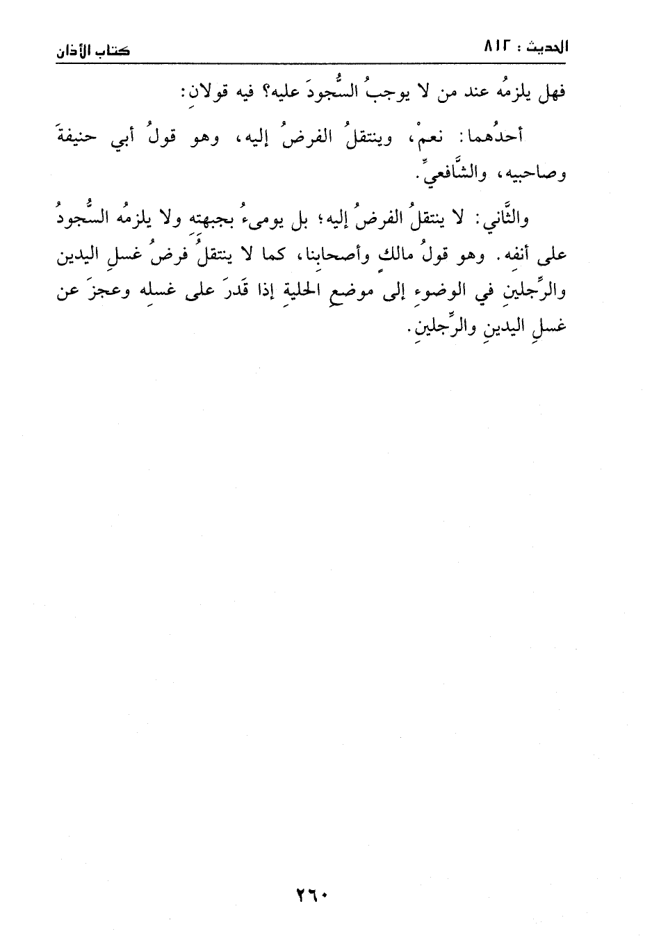 والثاني: لا ينتقل الفرض إليه، بل يومي بجبهته، ولا يلزمه السجود على أنفه، وهو قول مالك وأصحابنا، كما لا ينتقل فرض غسل اليدين والرجلين في الوضوء إلى موضع الحلية، إذا قدر على غسله، وعجز عن غسل اليدين والرجلين.