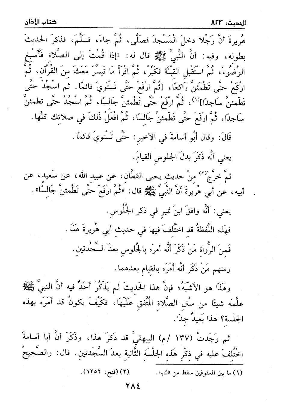 ثم وجدت البيهقي قد ذكر هذا، وذكر أن أبا أسامة اختلف عليه في ذكر هذه الجلسة الثانية بعد السجدتين. قال: والصحيح