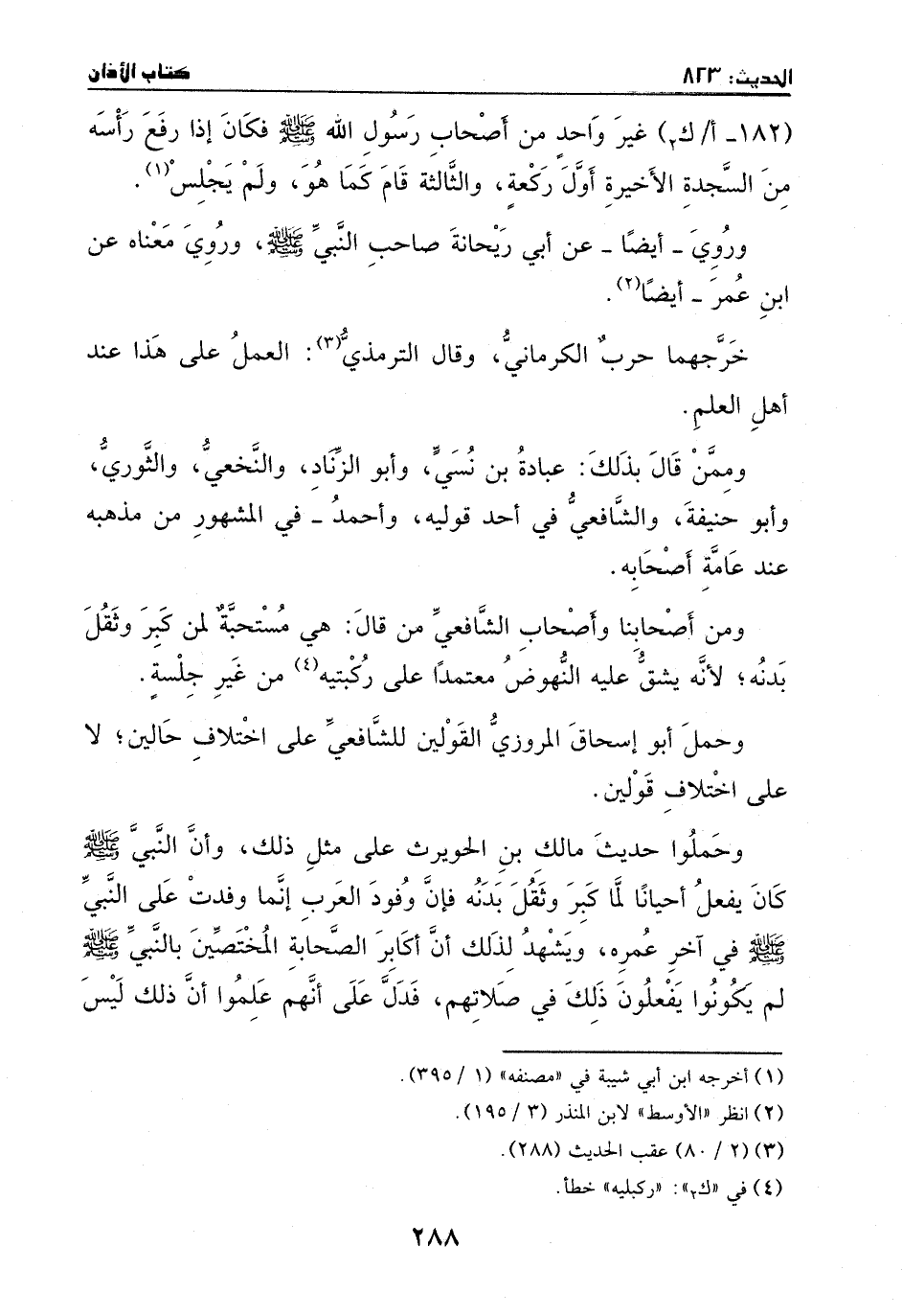 غير واحد من أصحاب رسول الله - صَلَّى اللهُ عَلَيْهِ وَسَلَّمَ -، فكان إذا رفع رأسه من السجدة الأخيرة – أول ركعة والثالثة – قام كما هو ولم يجلس.