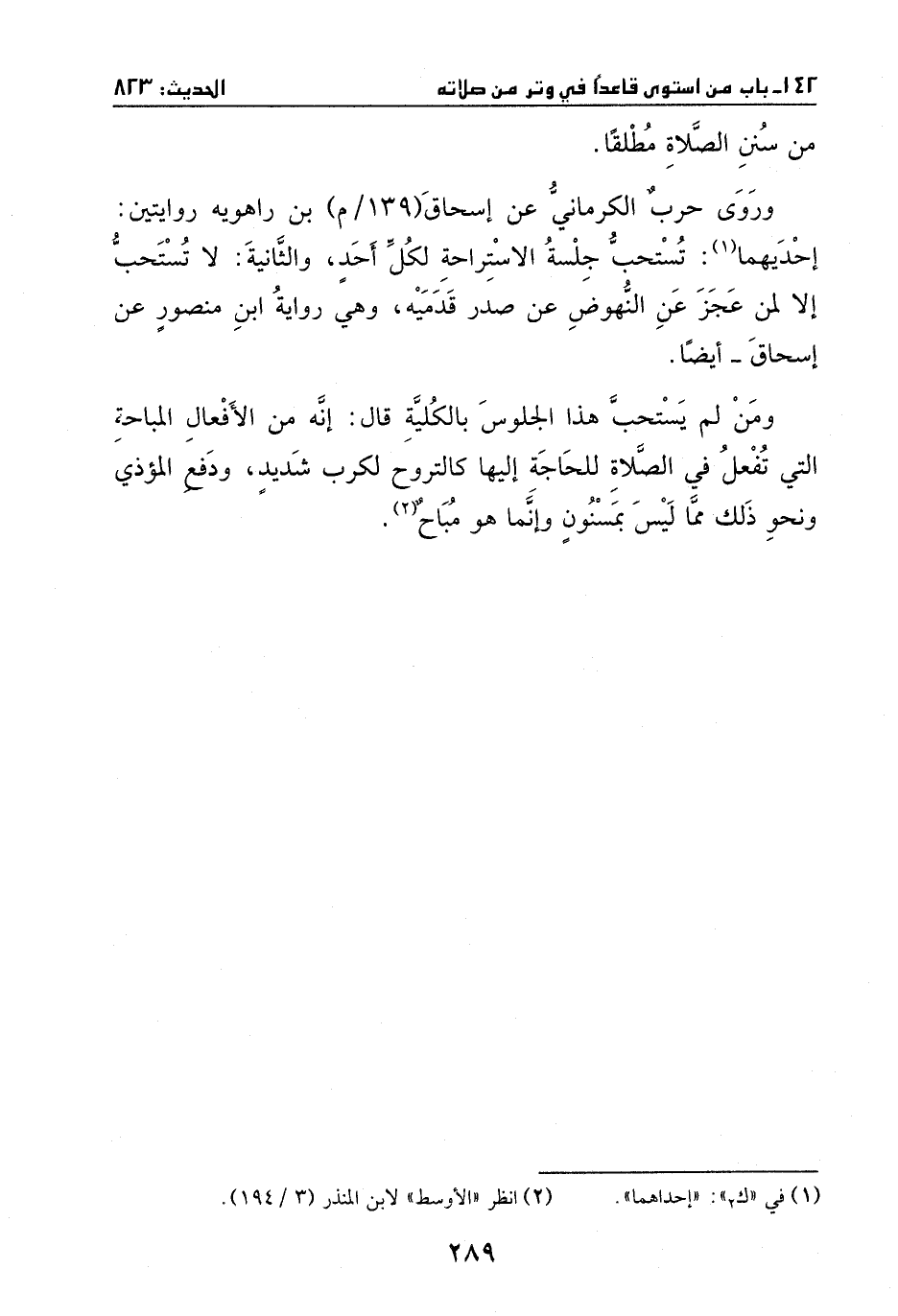 وروى حرب الكرماني، عن إسحاق بن راهويه روايتين: